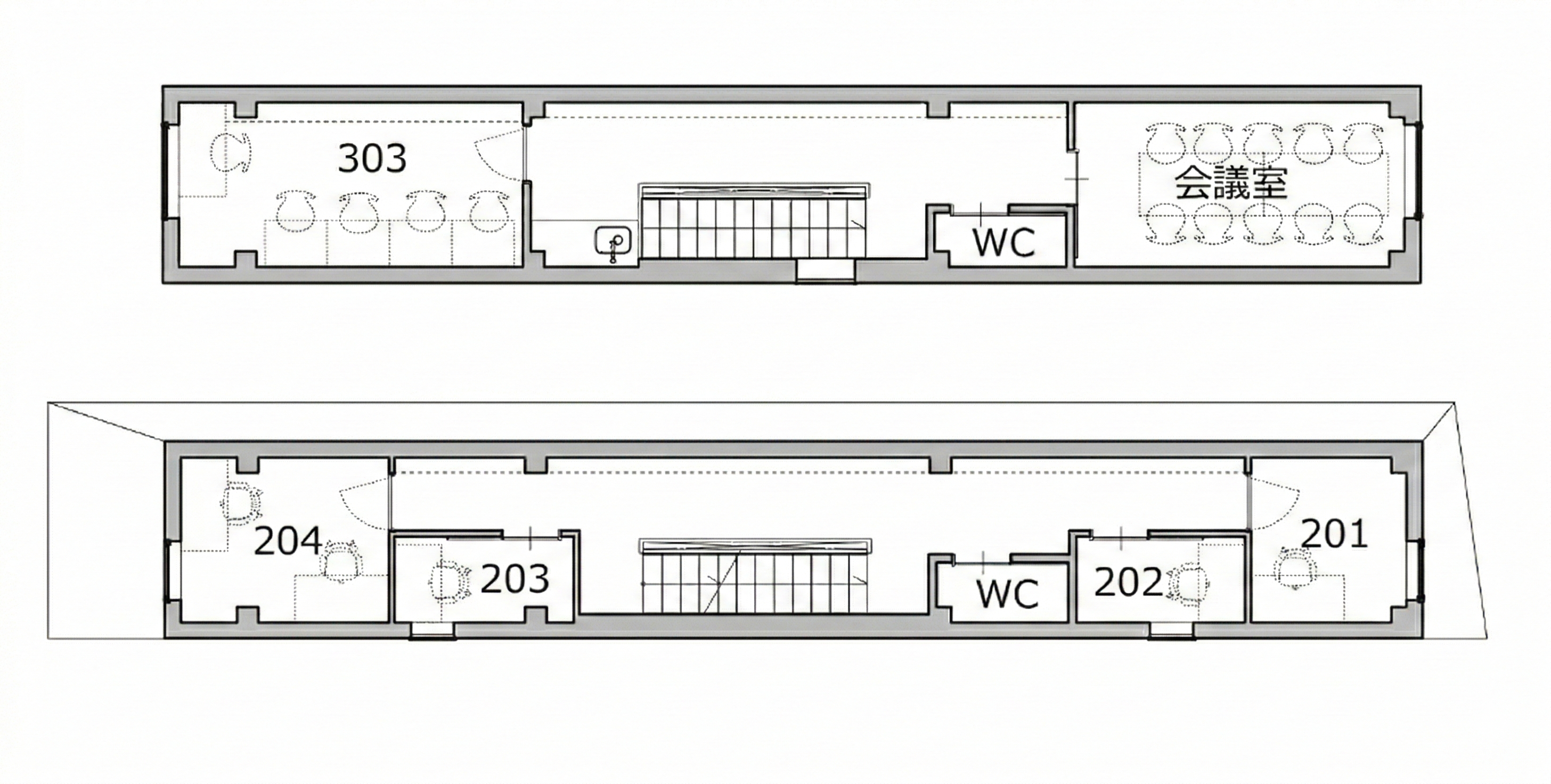 プライベートオフィスサービスの 「ほんまちBASE」 Honmachi Boat 2階、3階レイアウト